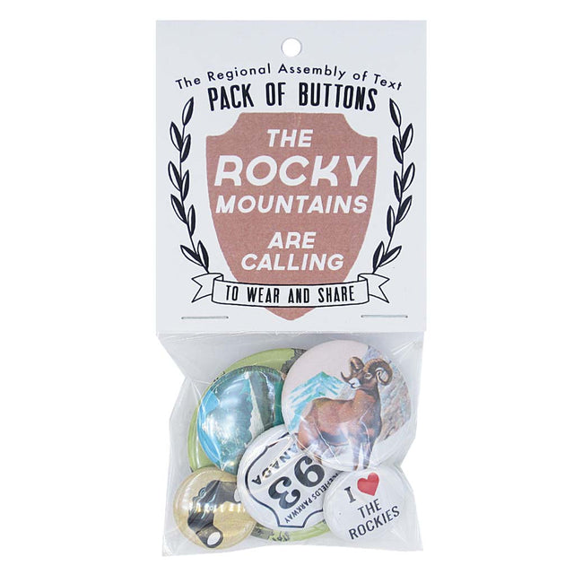 The Rocky Mountains are calling. Designed to wear & share, this pack of buttons contains 6 buttons of varying sizes. Set measures approximately 3” x 6½”.