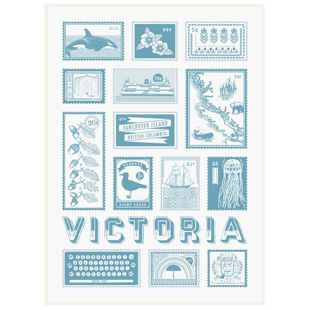 This tea towel is perfect for locals and tourists alike. Features a collage of imaginary Victoria postage stamp designs. It is hand printed on 100% cotton and measures 19” x 26”.