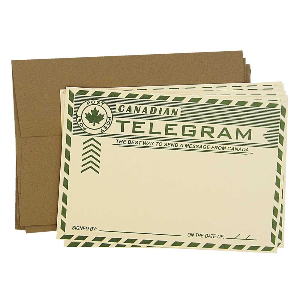 Send an official telegram with your important news from Canada on these classic flats. This set includes 10 identical flats & 10 grocer kraft coloured envelopes and measures 3¾” x 5”. (Note: flats are single sided cards)
