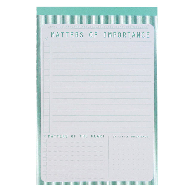 Time to figure out what is important. This handy notepad measures 5” x 8” and has approximately 50 pages of recycled paper.